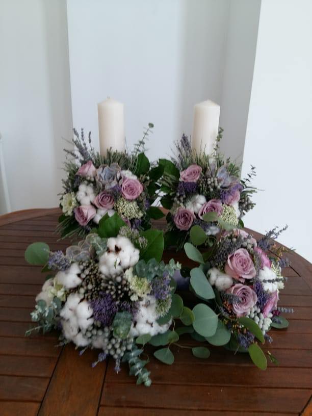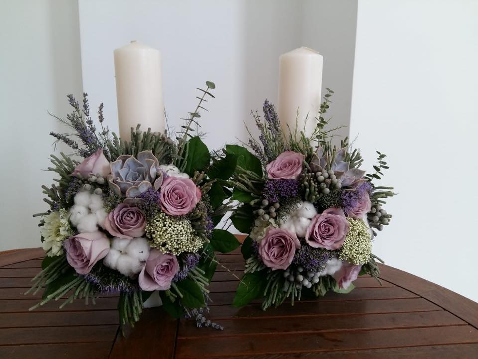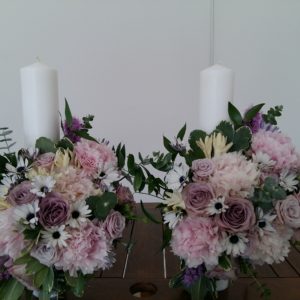 Pachet nunta lumanari, buchet mireasa, buchet nasa, aranjament prezidiu, 10 aranjamente masa.